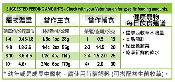2.額外補充:當食草寵物需要添加益生菌和營養時,餵食7至10天。
