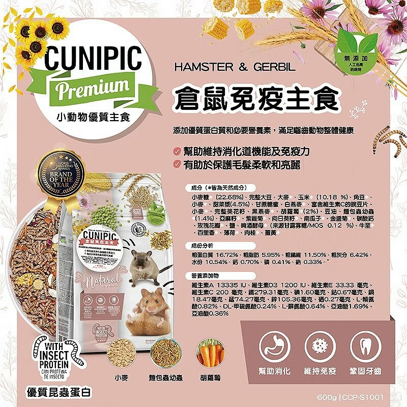豐富、健康、美味和平衡的食鼠主食,每顆皆包含所有必需的營養成分和維生素可提供倉鼠全方位成長。